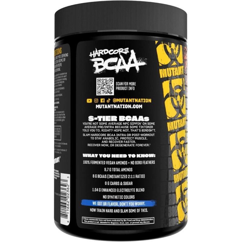 BCAA Hardcore 390 g Mutant Nation : une formule avancée à haute teneur en leucine, enrichie en électrolytes, pensée pour les séances intenses et les phases de récupération. Goûts explosifs, efficacité ciblée pour les sportifs exigeants.