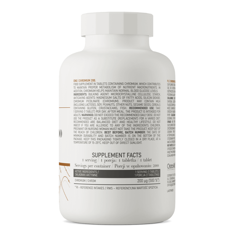Chrome Picolinate 200 µg – OstroVit : soutien du métabolisme des sucres, régulation naturelle de la glycémie, format végan, absorption optimale.