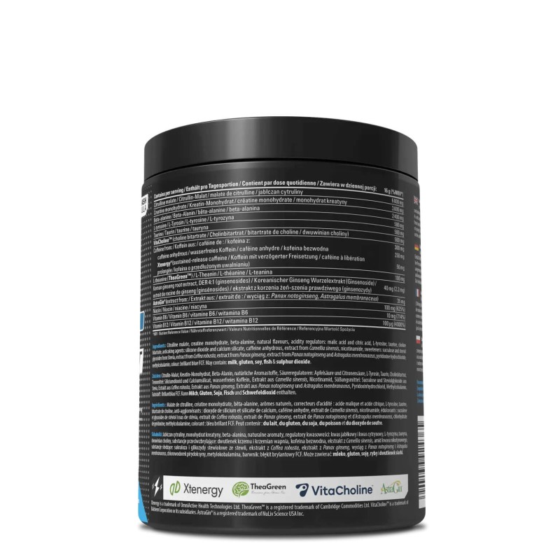 ° 50mg de Xtenergy™ pour compléter la contenance en caféine anhydre avec son effet de diffusion prolongée de caféine naturelle. C'est très fonctionnel! C'est aussi grâce à sa caféine naturelle que l'on ne ressent pas de crash avec des niveaux d'énergie qui ne sont pas totalement épuisés. Elle joue un rôle sur la fonction cognitive et aide à garder une bonne humeur en ayant des effets jusqu'à 8heures après sa prise.